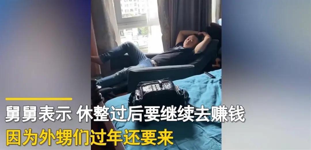 而每次聚会完离别,“宇宙舅舅”就变成了“宇宙最难过舅舅”,他会叮嘱大家回去后要好好学习,有小外甥大喊“我们还会回来的”,他听完后满脸笑容。最后他还表示,休整过后要继续去赚钱,因为外甥们以后还要来。